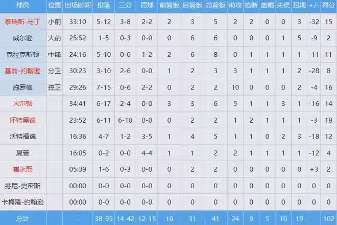 崔永熙的上場時間、得分、籃板和出手數,均為NBA正賽生涯新高,且各項數據均是一場就超過前面4場的總和...........