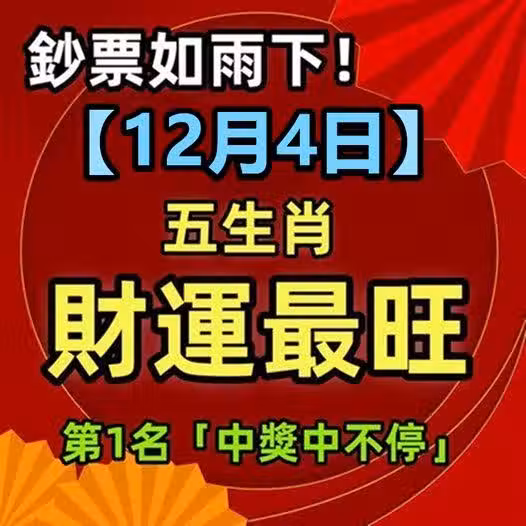 鈔票如雨下!【12月4日】五生肖財運最旺,第1名「 中獎中不停 」