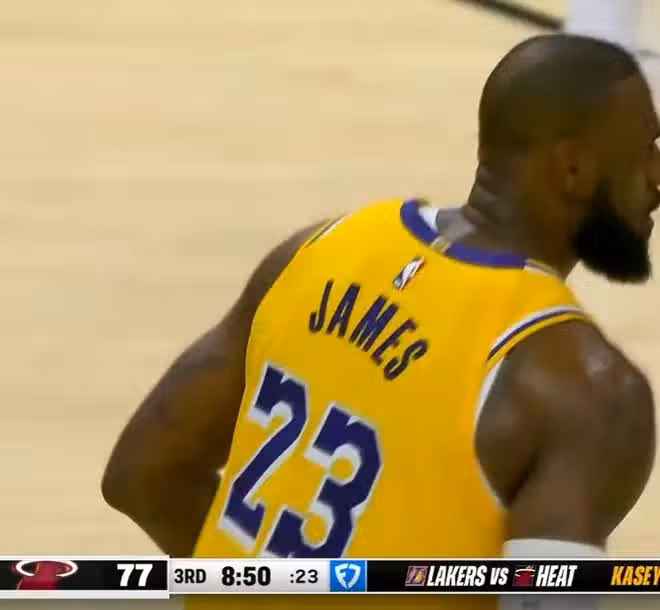詹姆斯終於展現出了自己的驚人統治力,湖人對陣熱火的比賽,他火力全開半場就已經砍下了18分,在第3節,甚至是擊破了自己不進三分的一個尷尬紀錄,終於連續打鐵了整整20次之後,三分球終於進了。