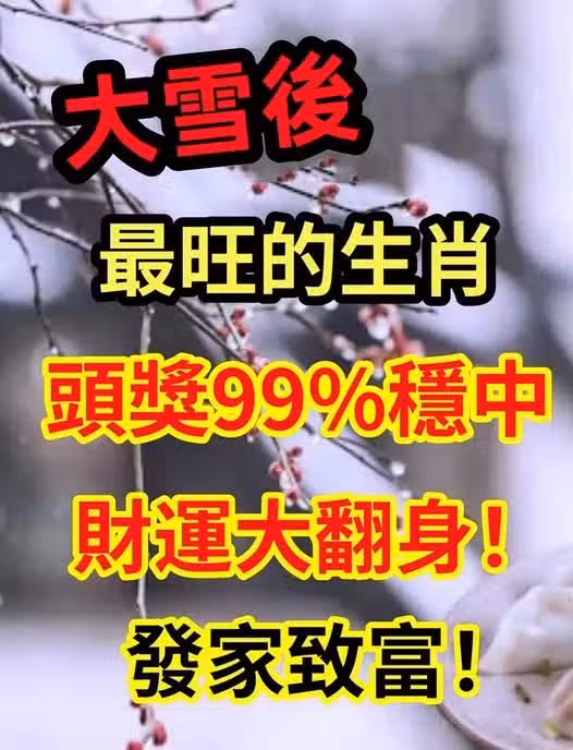 大雪後最旺的生肖!「頭獎99%穩中」 財運大翻身,發家致富!