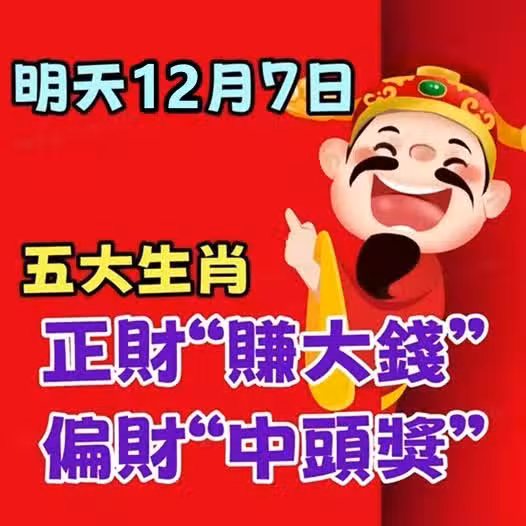明天12月7日,五大生肖正財「賺大錢」,偏財「中頭獎」