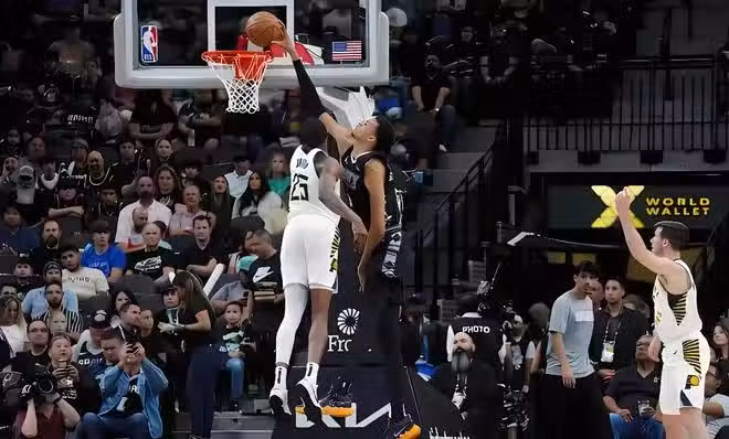 菜鳥賽季,文班亞馬就砍下了場均21.4分10.6籃板3.9助攻3.6蓋帽的誇張數據了,他直接是拿下了蓋帽王的頭銜,攻防兩端都極具侵略性,是完美的建隊核心。進攻端文班亞馬哪怕只是吃餅,一場拿個十幾分都是輕輕鬆鬆的事。文班亞馬隔扣對手時,即使高度沒有對手高,甚至隔著籃筐很遠,但他依舊可以完成隔扣,當今聯盟也只有他了。