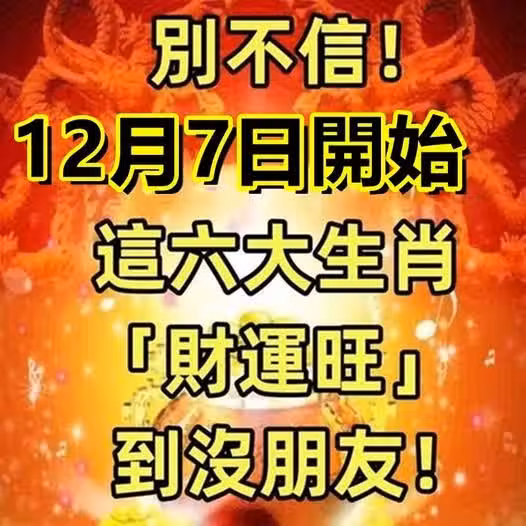 別不信!12月7日開始,這六大生肖「財運旺」到沒朋友!