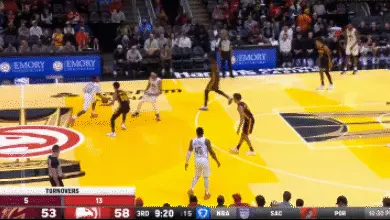 阿倫的提上掩護成功將卡佩拉從內線牽制出來,好在又及時回防禁區並最終封蓋掉米切爾的上籃。