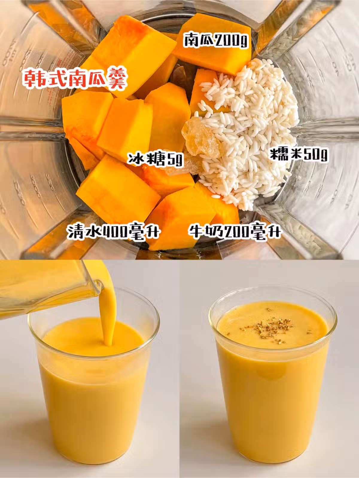 🥤韓式南瓜羹 |南瓜200g|糯米50g|冰糖5g|水400毫升|牛奶200毫升|桂花(裝飾用) ◆牛奶打完之後才加入。去烤肉店每次必點的這一碗,自己做的比店裡的還好喝!!香甜可口絲滑濃郁奶香十足,連喝兩大杯~~太滿足了 .~~~~~~~~~~~~~~~~~~~~~~~~~~~