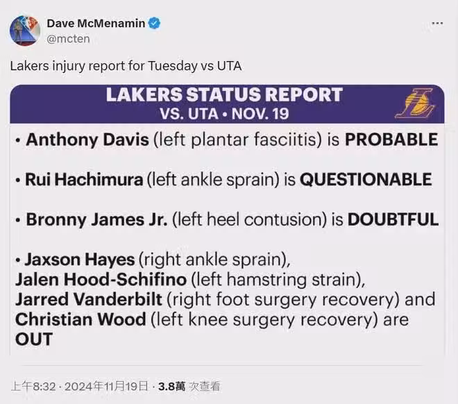 此後,布朗尼幾乎沒有了消息,他一直跟隨湖人出征客場,但都在場下觀戰,進行休養。