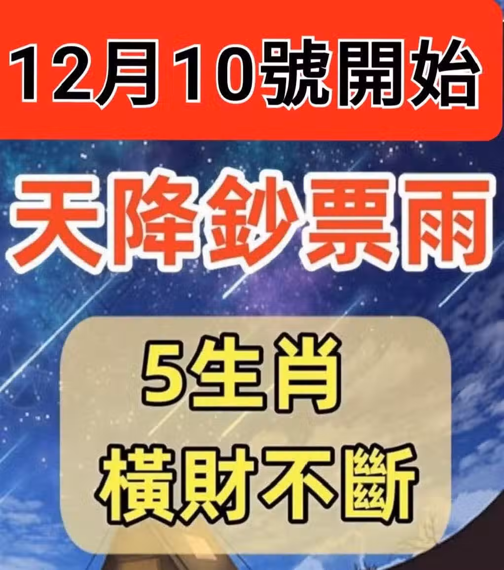 12月10號開始天降鈔票雨,5大生肖橫財不斷!