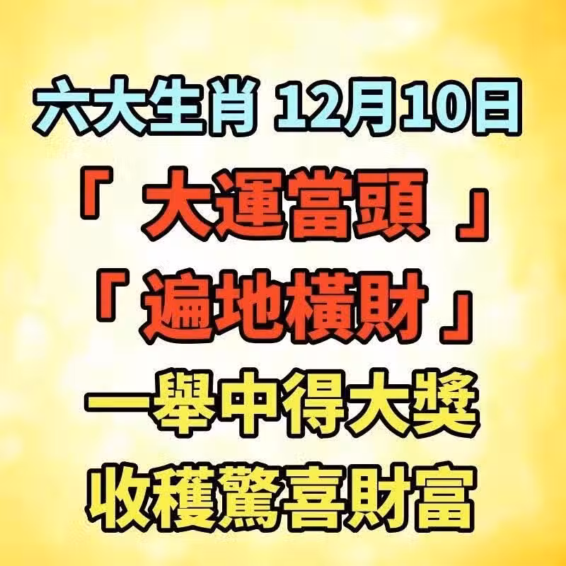 六大生肖 12月10日 「 大運當頭 」 「 遍地橫財 」