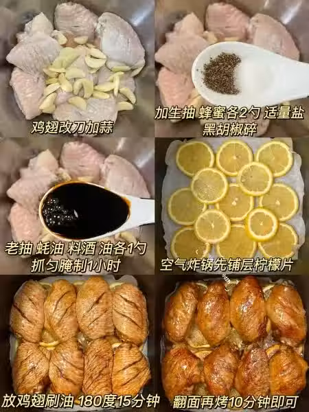 做法:先將雞翅解凍改刀腌制一下檸檬打底鋪上雞翅慢慢烤就可以了!