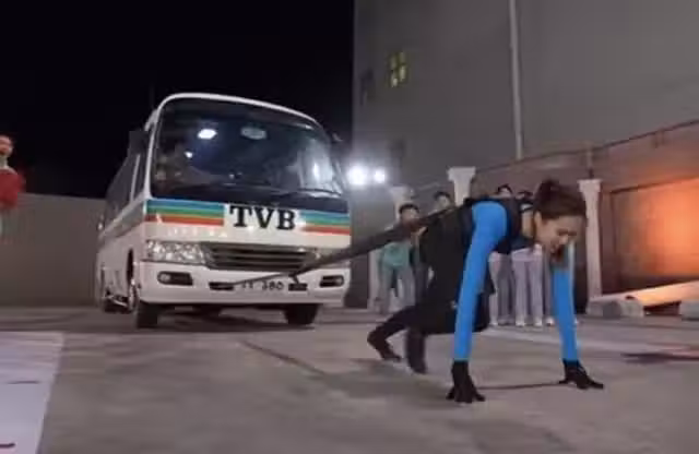 好拼!TVB長腿女神直播拼盡全力表演人拉車,遭網友質疑造假!