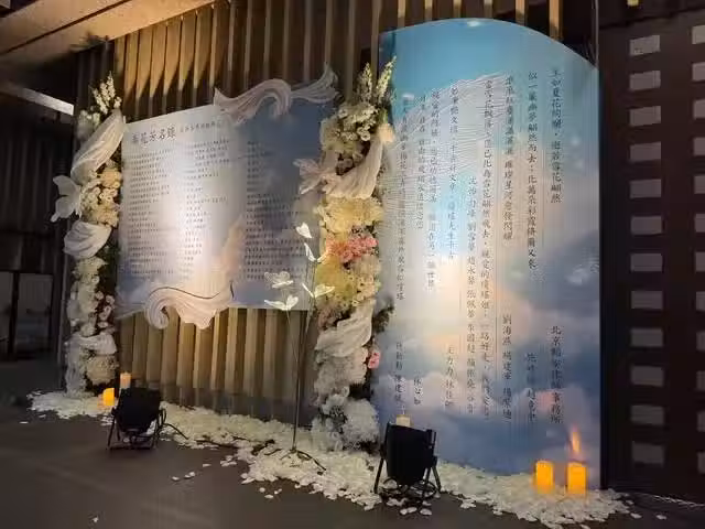 在會場邊上,有一處地方非常顯眼,上面的文字也足可證明瓊瑤的一生:生如夏花絢爛,逝若雪花翩然、似一簾幽夢翩然而去........