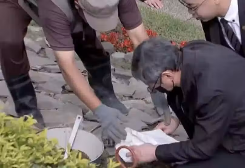 最後在大家的注視下,瓊瑤的骨灰被埋葬在了花海里,旁邊就是平鑫濤骨灰拋灑的地方。