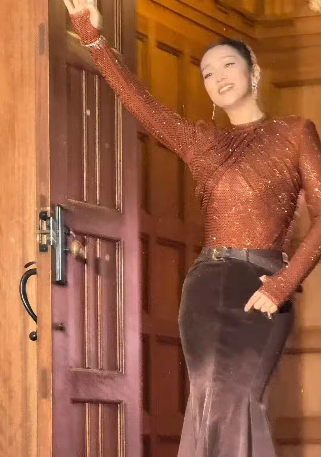 此外,在寬肩的對比下,鞏俐的細腰也十分搶眼。肩膀、背部和大臂都是中年人最容易變厚發福的部位,但是已經58歲的鞏俐卻保養得很好,身上沒有一絲贅肉,身材凹凸有致。