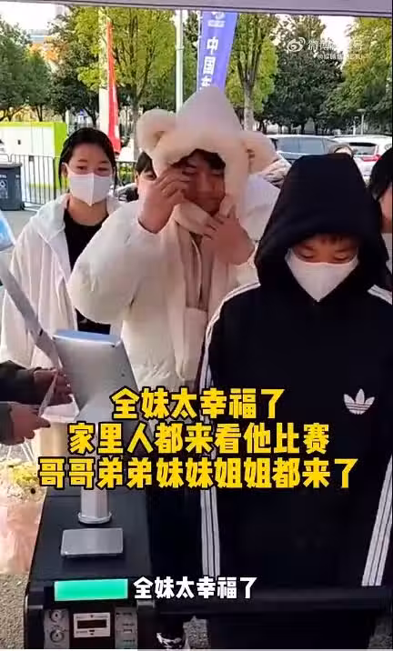 大哥全進華帶著弟弟妹妹們來到了看台之上,為妹妹全紅嬋加油。