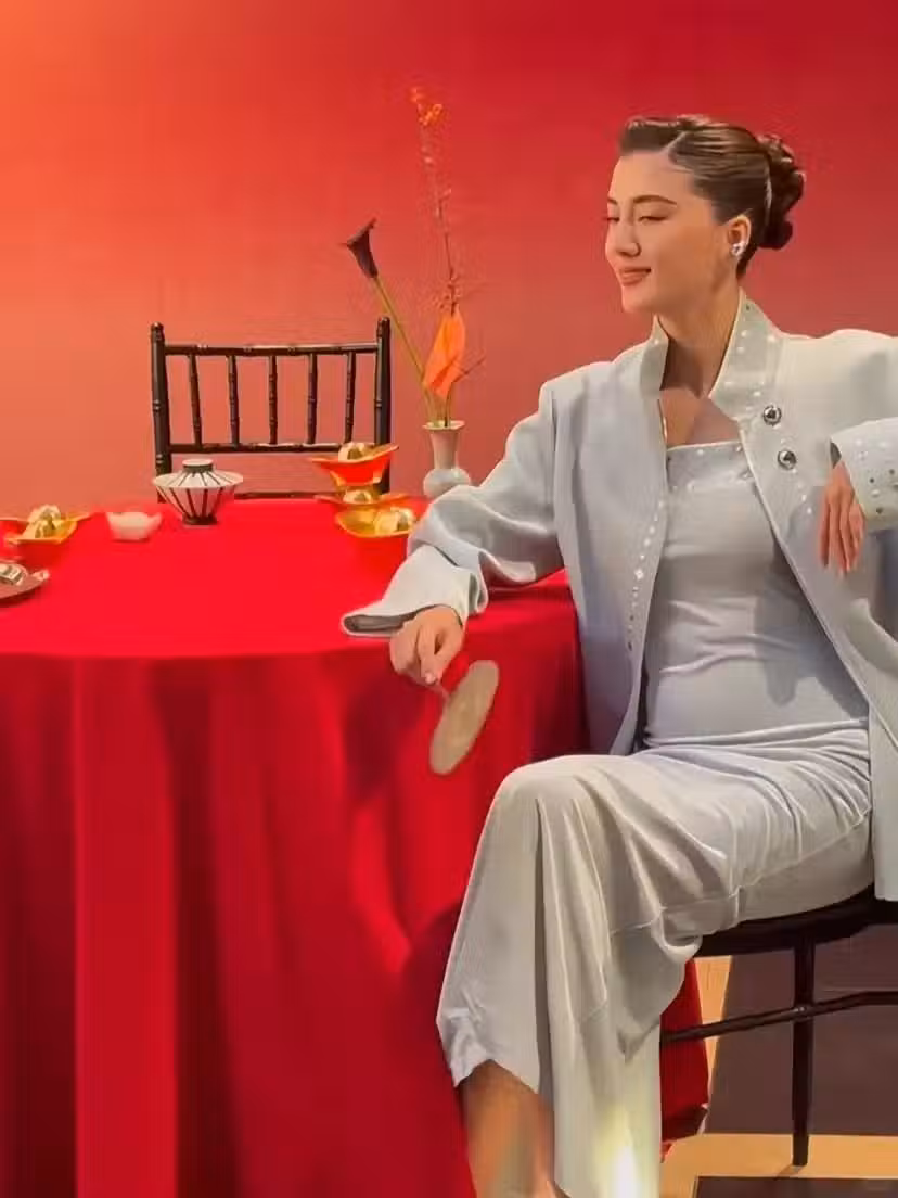 照片中可以看到盤起頭髮兼化上淡妝的吳千語,當日以一襲霧面藍絲絨套裝出席晚宴,中國風元素的造型十分有古典美,氣質相當出眾。但出了名的身材苗條纖瘦、甚至有紙片人之稱的她似乎變得圓潤,而腰間小腹亦微微凸起,因此惹來懷孕傳聞。