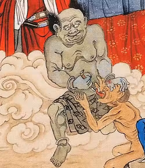 死後被打入拔舌地獄,小鬼掰開來人的嘴,用鐵鉗夾住舌頭,生生拔下,非一下拔下,而是拉長,慢拽……後入剪刀地獄,鐵樹地獄。