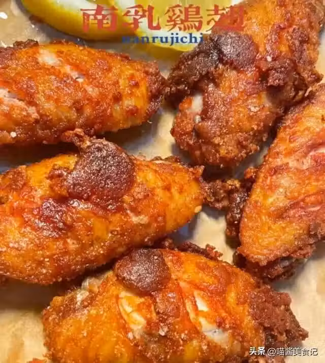 所需材料:雞翅中8-10根、南乳2塊、薑片適量、蒜末適量、紅椒適量、干辣椒適量、料酒適量、食鹽適量、雞精適量、食用油適量。