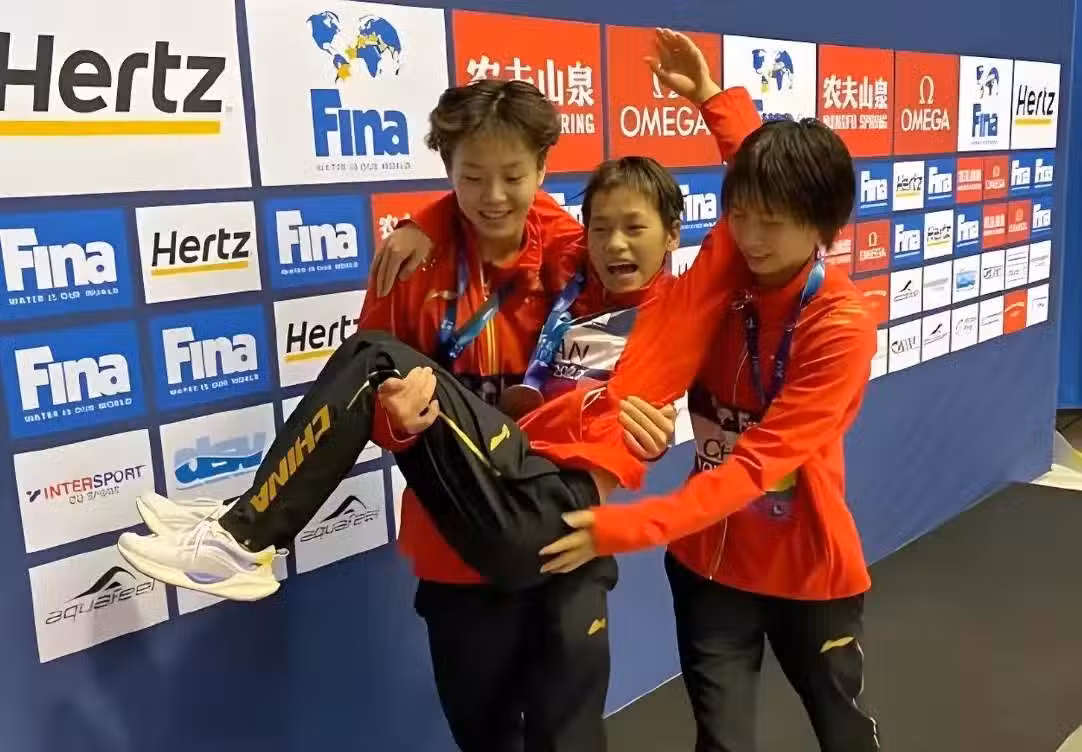 三年前的這次互動,也並非全紅嬋首次展現她的「人形掛件」特質。在2021年的全運會期間,全紅嬋就曾被多位跳水隊的隊友如陳艾森、陳藝文、任茜等人抱起,成為了「全員寵愛」的小妹妹。而這次李雯雯則成為了她的「新目標」。作為舉重界的頂級運動員,李雯雯體重接近300斤,而全紅嬋的體重則只有70斤左右。兩人巨大的體型反差,再加上全紅嬋標誌性的「剪刀手」,讓這一幕格外逗趣。