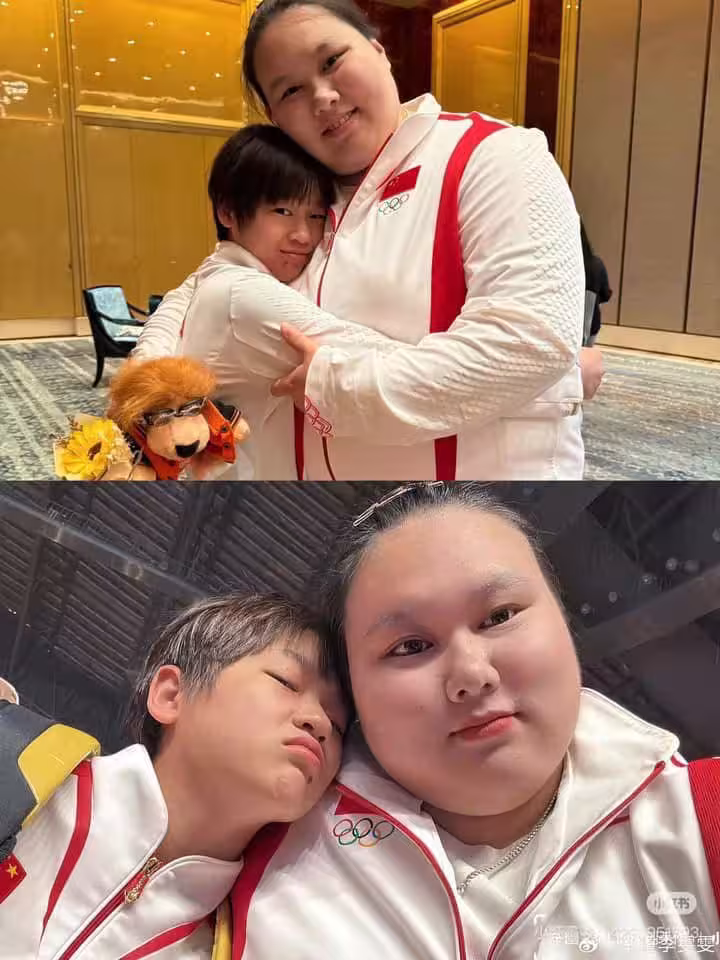 全紅嬋與奧運冠軍 「擁抱」照片太搞笑,因體型差異太大,網友爆笑:以為媽媽抱寶寶!