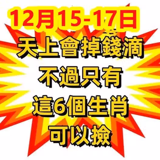 12月15 到 17日天上會掉錢滴,不過只有這6個生肖可以撿