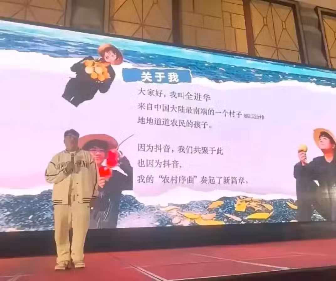 此外,全進華通過直播賣農產品,有了人氣,他的銷售額越來越高,收入也是越來越多。而近日,全進華受邀參加了知名平台的頒獎典禮,因為突出的貢獻,他獲得了2024年度新勢力電商獎,現場全進華身穿黑色的唐裝,帥氣十足。而面對眾多鏡頭,此前害羞靦腆的他變得侃侃而談,絲毫不怯場,在舞台上進行了演講。在台下全進華依舊是十分受歡迎,引來了無數粉絲和他合影留念,可以說現場的全進華就像一個明星一樣。