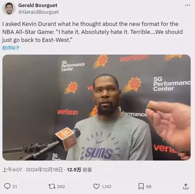 NBA聯盟宣布!全明星正賽改制!杜蘭特公開反對:我非常厭惡