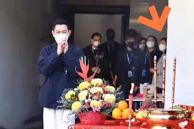 早在17號舉行「拜神儀式」的時候,朱麗倩就曾現身打理。見的她穿著灰色上衣,現身搭配黑色褲子,整個人看起來個普通人一樣。