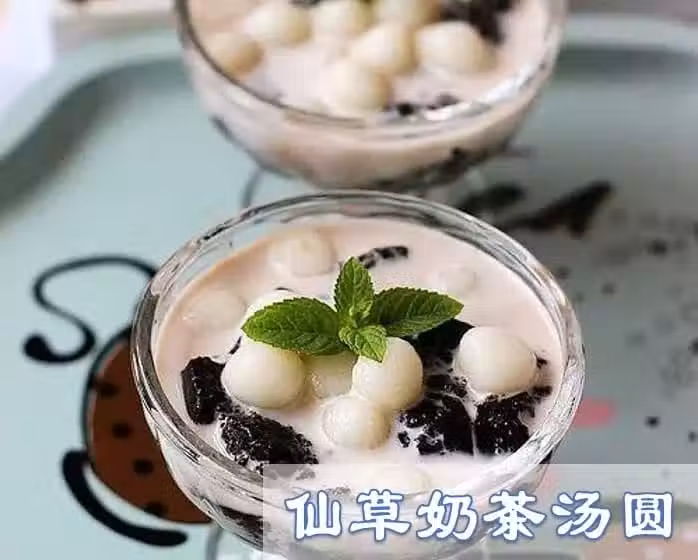 材料:仙草粉20克, 糯米粉50克,牛奶一盒