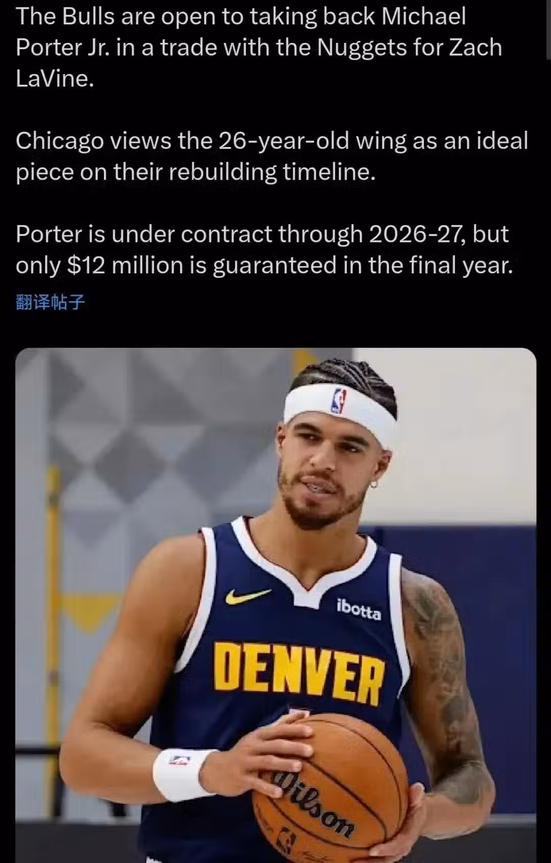 福克斯體育記者Sidery:公牛願意與掘金交易,用拉文換回小波特。