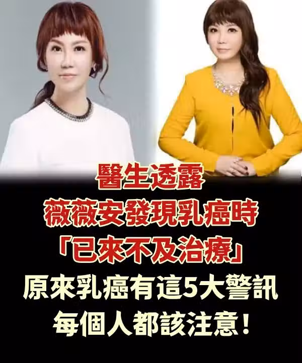 醫生透露薇薇安發現乳癌時「已來不及治療」! 原來乳癌有這「5大警訊」,每個人都該注意!