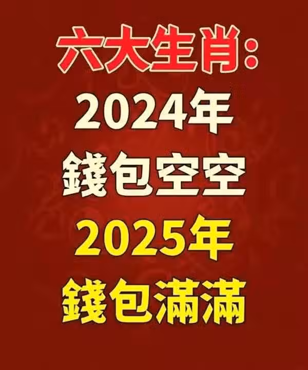 六大生肖:2024年錢包空空,2025年錢包滿滿 !