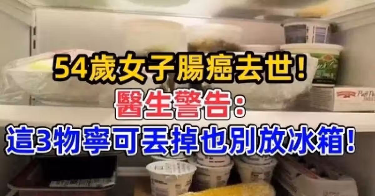 54歲女子腸癌去世!醫生警告:這3物寧可丟掉也別放冰箱!