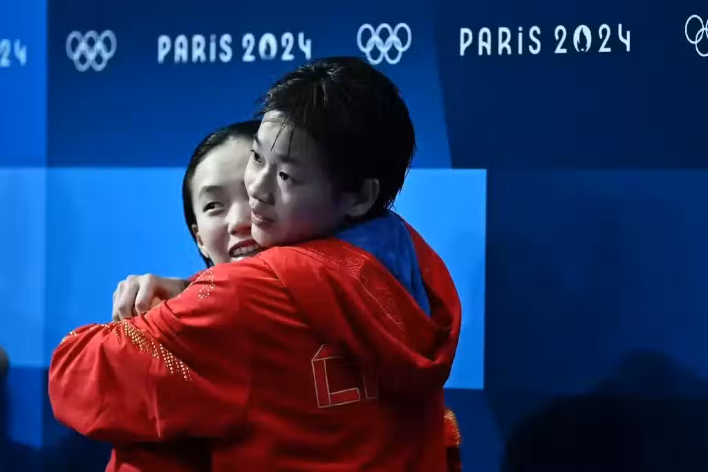 太可愛了!奧運奪金後全紅嬋跳到陳芋汐身上,兩人緊緊擁抱在一起_