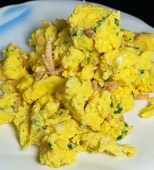 4、把雞蛋炒好之後,再給它分成一小塊兒一小塊兒的,再來點深海磷蝦肉,味道更加的鮮美了,雞蛋炒好之後,咱們就可以出鍋裝盤了,清淡而且鮮嫩,老少皆宜,特別的好吃。
