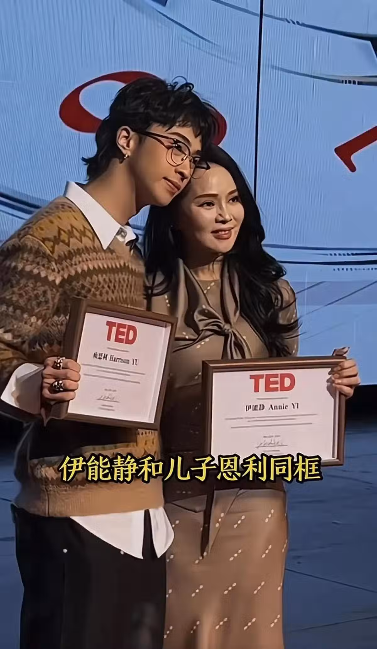 本次活動是恩利獲獎了,作為媽媽的伊能靜過來陪他領獎,並且在台上曬獎狀合影。