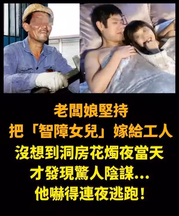 老闆娘堅持把「智障女兒」嫁給工人,沒想到「洞房花燭夜」當天才發現驚人陰謀...他嚇得連夜逃跑!