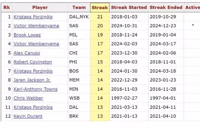 如今有個年輕人非常有希望打破波津的這個紀錄,他就是文班亞馬,在12月24日馬刺vs76人的比賽中,文班亞馬19中9(三分13中6)砍下26分9板4助攻8蓋帽,這是他連續第20場達成至少投中1個三分+1個蓋帽的壯舉,已逼近波津的連續21場歷史紀錄了。