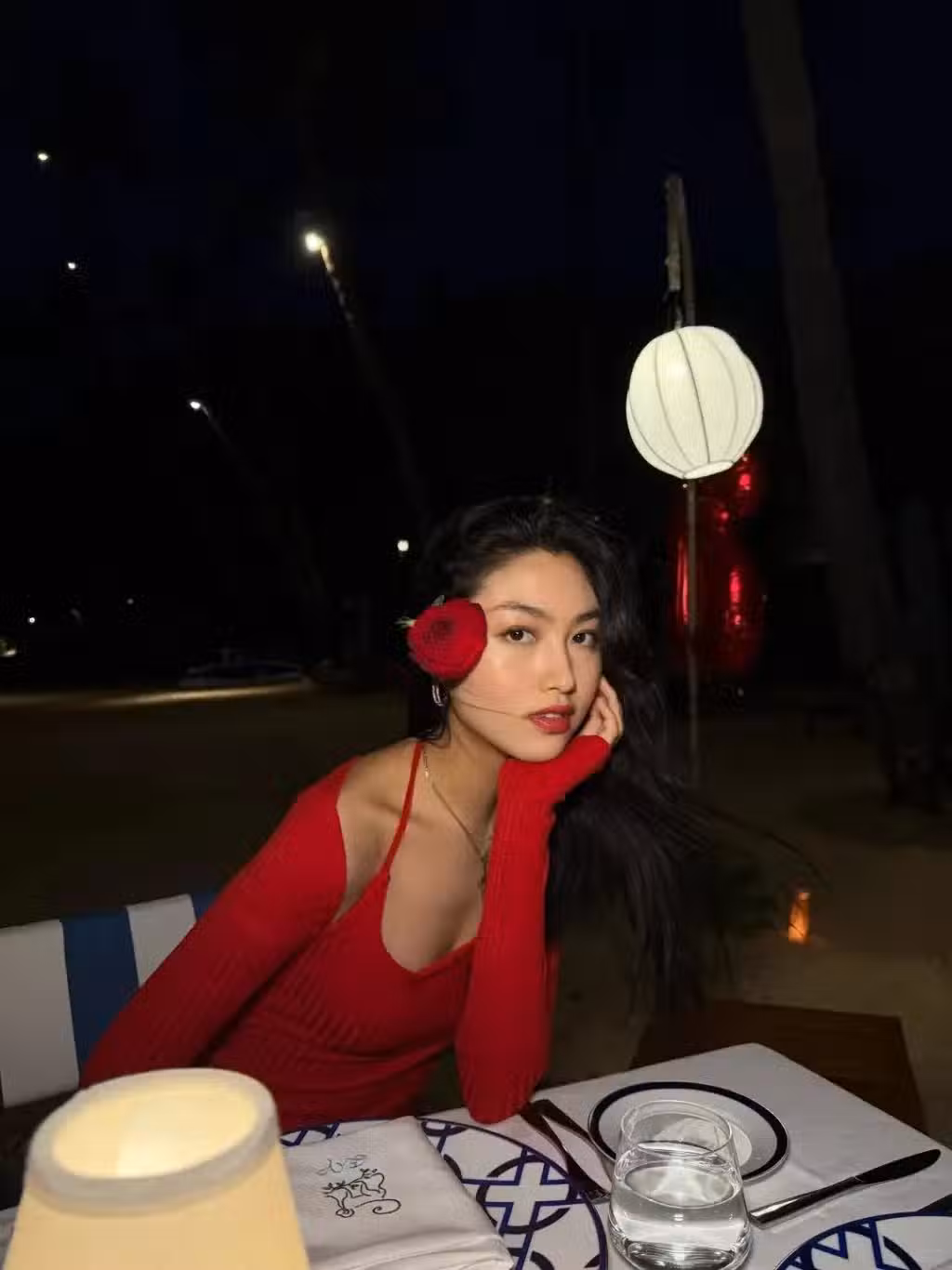 照片中所見,任晴佳和父母在海邊嘆大餐,現場以氣球和燈飾布置,並掛上紅色「20」字樣的氣球,琦琦則手持紅玫瑰,壽星女任晴佳也配合地以全紅色掛頸短裙現身,除了大曬一雙逆天長腿外,當她輕托香腮時,也罕有展現豐滿上圍,充滿女人味!