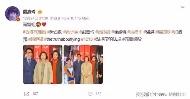 時間飛逝,林青霞如今也已經70歲高齡,是當奶奶的年紀了。而在12月24日,林青霞的好友劉嘉玲曬出了她們與黃子華這位演員的合照。