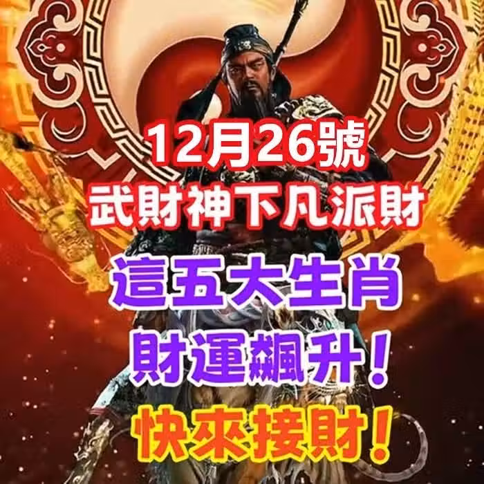 12月26號武財神下凡派財,這五大生肖財運飆升!快來接財!