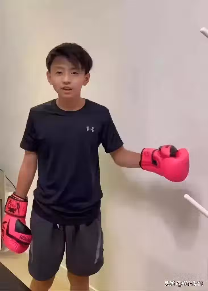 而14歲的次子謝振南,長得卻更像媽媽一點兒,圓圓的臉蛋,酷愛拳擊。