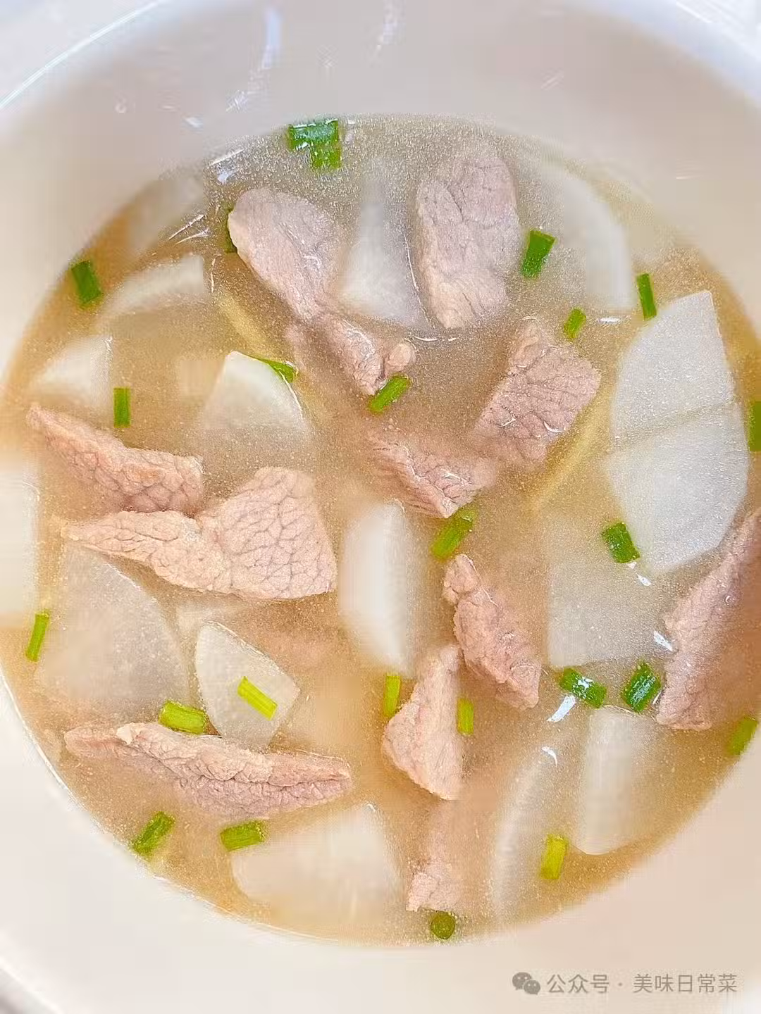 蘿蔔里有滿滿的維生素C,吃了對身體特別好,還能幫助消化、通順腸道。它和肉片一起燉,那簡直是絕配!湯里鮮美的肉汁,加上蘿蔔的清甜,一口下去,滿滿的幸福感。每次做這道菜,家裡人都吃得特別開心!