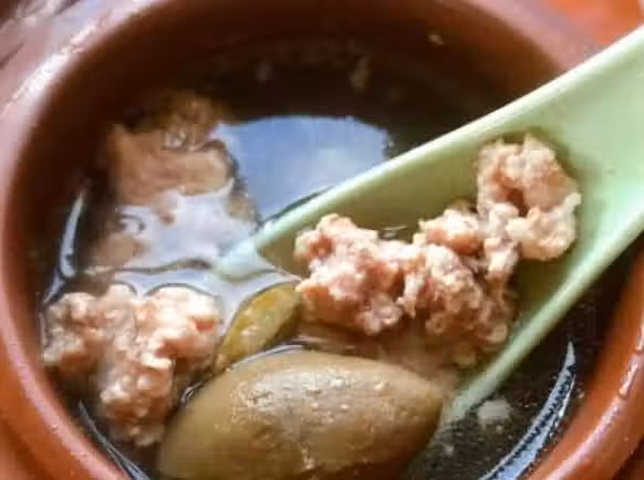 3.將青橄欖和瘦肉泥放入燉鍋中,隔水燉2個小時左右即可。