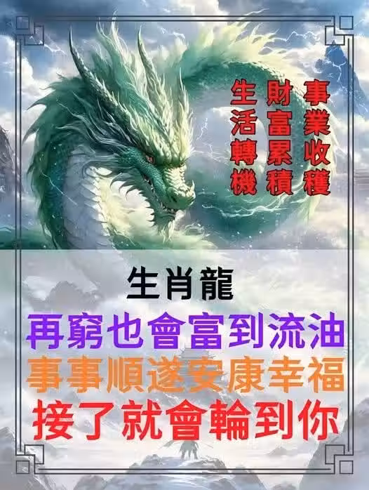 生肖龍:再窮也會富到流油,事事順遂,安康幸福,接了就輪到你