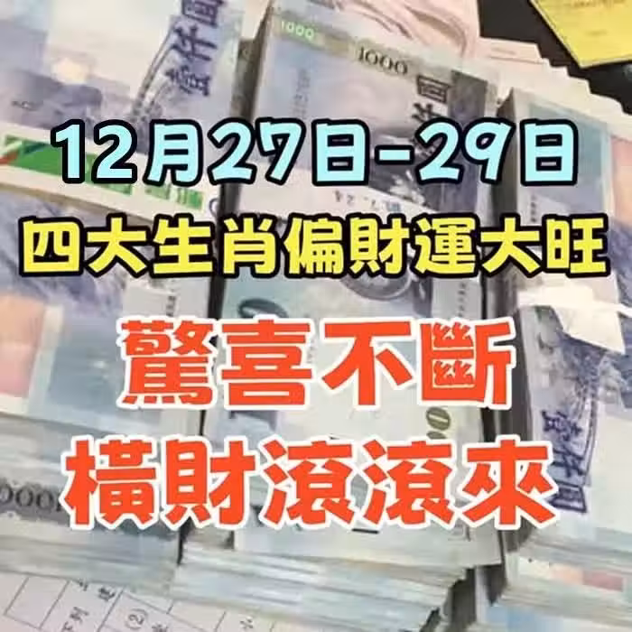 12月27日-29日,四大生肖偏財運大旺,驚喜不斷,橫財滾滾來!