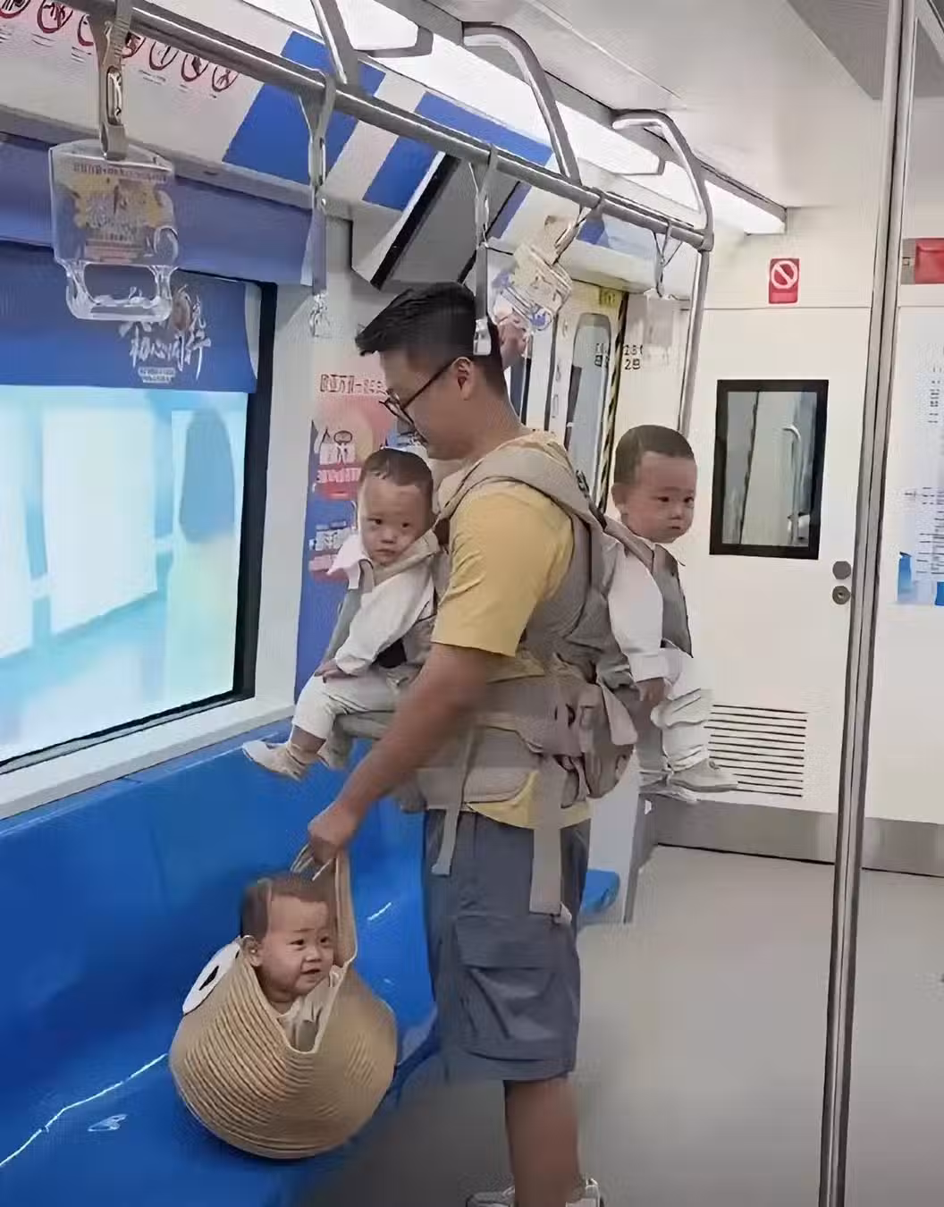 捷運遇「超人奶爸」!一人帶三娃「全程不哭不鬧」,他分享1神招,網笑:受教了
