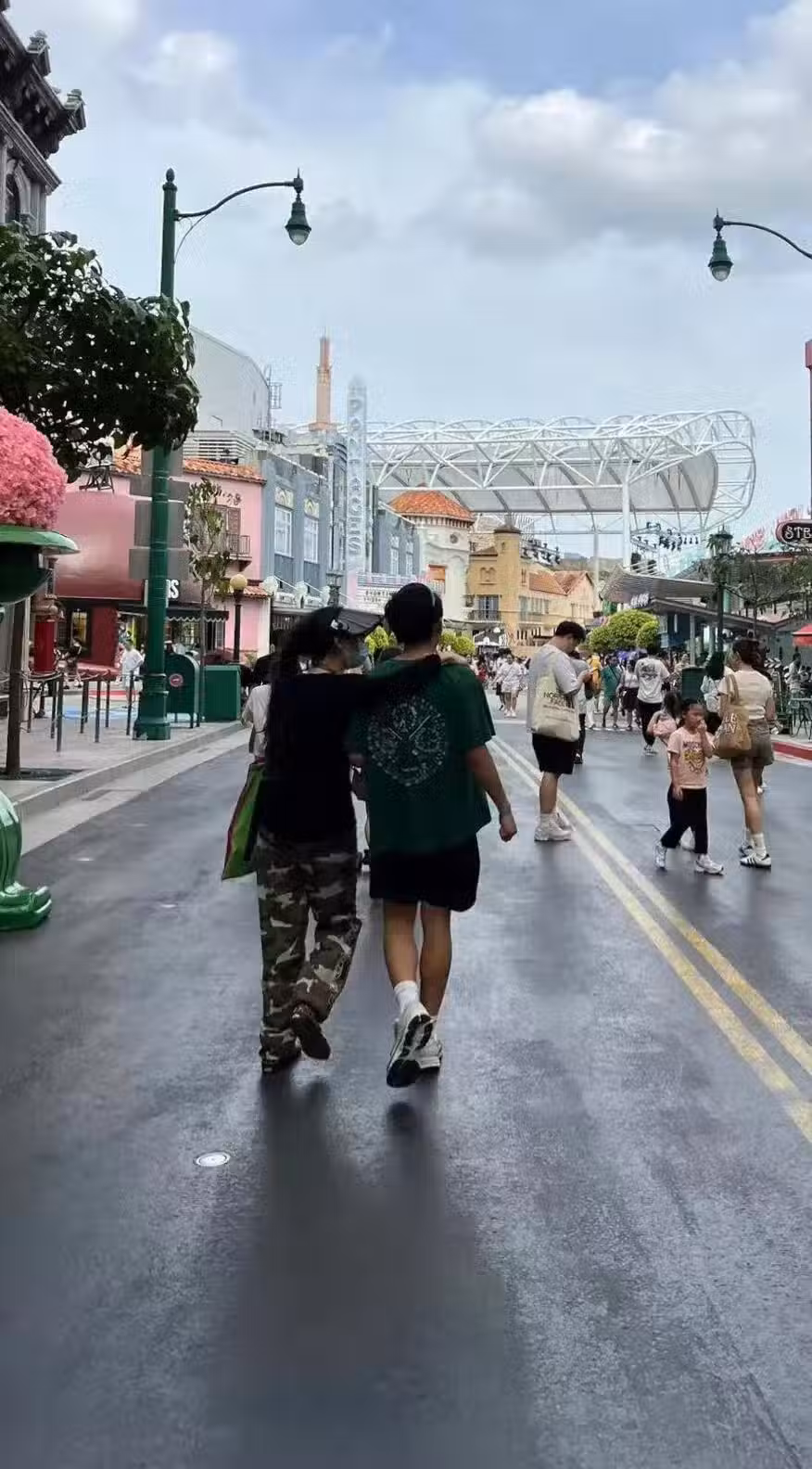 照片中,張柏芝頂著一頭凌亂的頭髮,戴著黑色遮陽帽,身穿黑色上衣和迷彩長褲,背著一個彩虹色帆布包,一身休閒打扮鬆弛感滿滿。Quintus頭上架著墨鏡,身穿綠色t恤和黑色短褲,一身時髦打扮潮男范十足。張柏芝搭著兒子肩膀,母子倆一路熱聊不停,就像是朋友一樣,讓人羨慕不已。