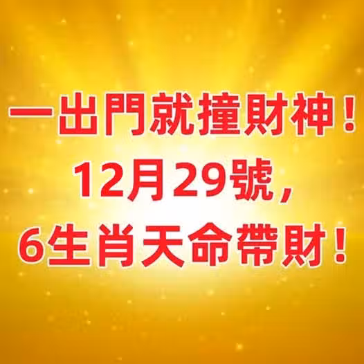 一出門就撞財神!12月29號,六生肖天命帶財!