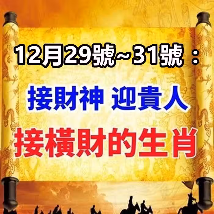 12月29號~31號:接財神 ,迎貴人,接橫財的生肖!
