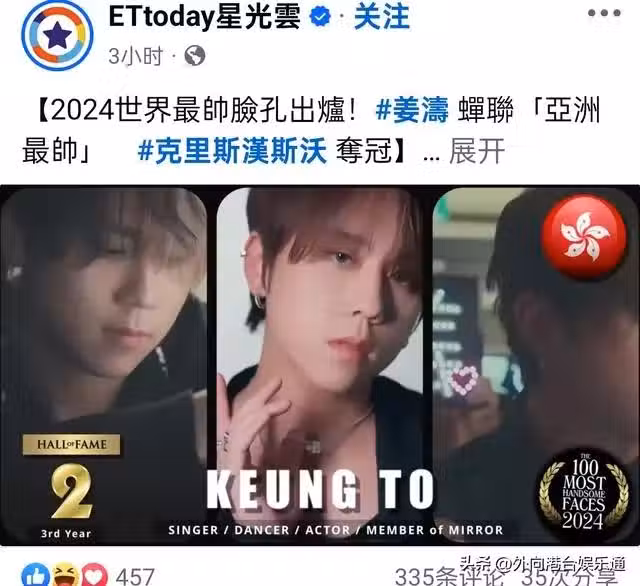 2024年全球百大最帥面孔揭曉,香港頂流姜濤排名第二